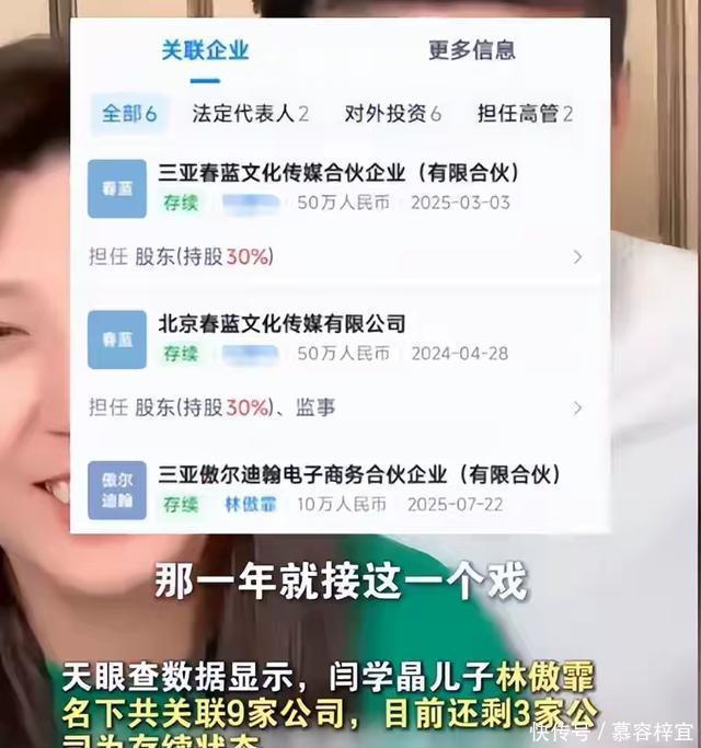 名下关联了有9家公司,也是让人震撼了,如果真是这个水平,到底有什么资格卖惨哭穷呢! 气的网友们直接表示,要封杀闫学晶,这是贪心不足蛇吞象啊!